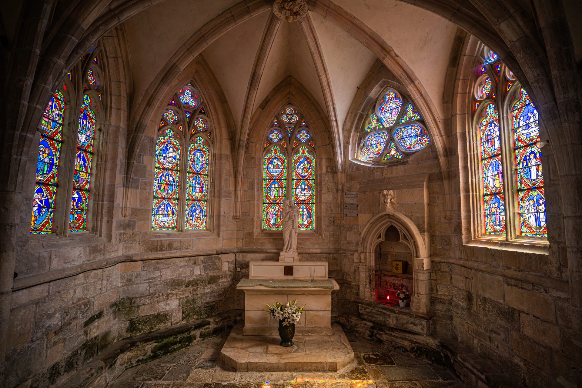 Véritable joyau de l’art gothique bourguignon, l’église de Saint-Père, construite du XIIIe au XVe s. et dédiée à la Vierge, n’est devenue église paroissiale qu’au XVIe s., succédant à l’ancienne église Saint-Pierre (dont on peut encore voir les ruines à la sortie sud du village) qui donna son nom au village.