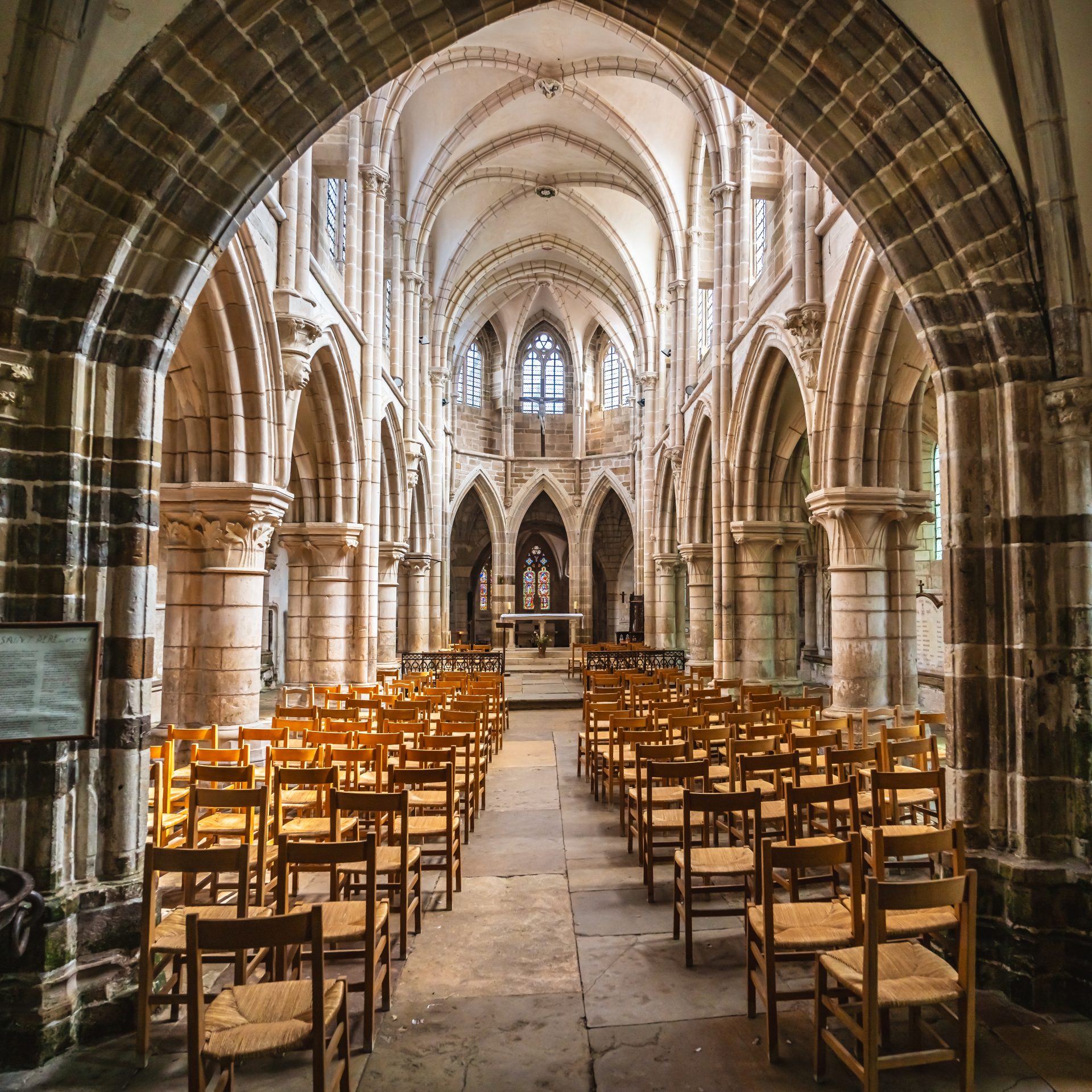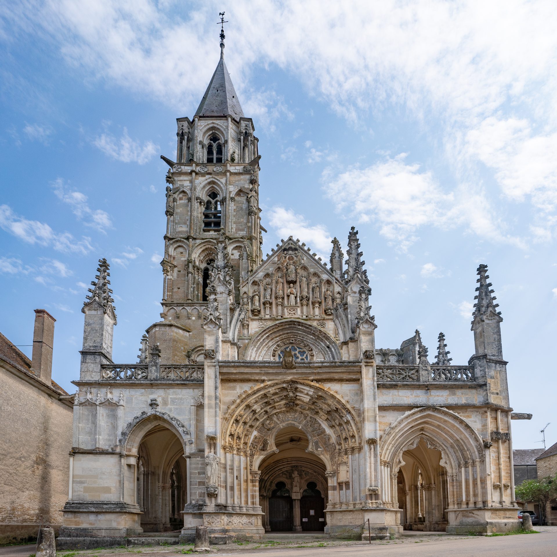 Le clocher, du XIIIe s., élégant et aéré, haut de plus de cinquante mètres, présente aux quatre angles de la tour, des anges sonnant de l’olifant pour appeler tous les hommes devant le Souverain Juge.