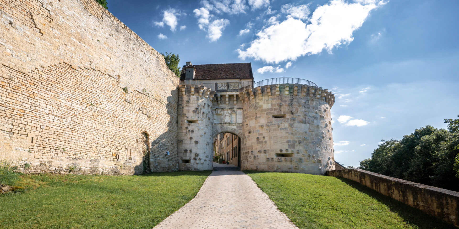 Le développement du village de Vézelay et de son abbaye au 12ème siècle ont engendré la construction d’une enceinte afin d’assurer la protection des habitants. La muraille, longue d’environ 1,9 km est épaisse en moyenne de 2m et haute de 10m. De cette muraille subsistent 5 tours du 14ème siècle. La Porte Neuve, bâtie à la fin du 15ème siècle s’est entourée de 2 tours rondes de 12m de diamètre et des murs de 3m d’épaisseur. L’accès était barré par 2 herses.